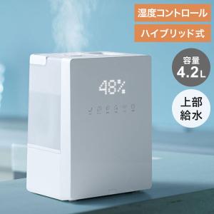 - 上部給水加湿器 スクエアミスト 4.2L 最大11畳 ハイブリッド式 3段階 湿度コントロール 減灯 消灯 省エネ 節電 抗菌カートリッジ 超音波×ヒーター
