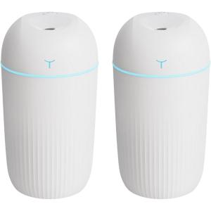 - 加湿器 上部給水 2個セット LEDライト 卓上 車 コンパクト 小型 アロマウォーター お手入れ簡単 オフィス 寝室 子供部屋 車用おしゃれ 卓上加