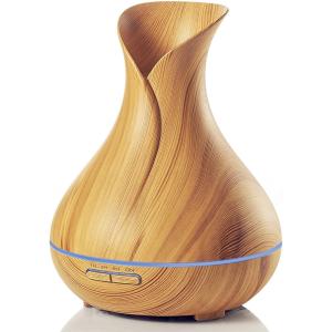 - e's Vase 超音波式卓上加湿器 アロマディフューザー 400ml 空焚き防止機能 タイマー機能 MDM(木目調, 木目調 無印タイプ)
