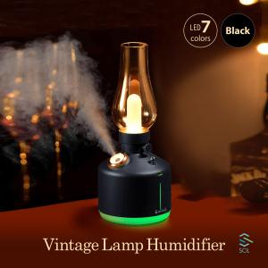 - 充電式加湿器 USB充電 ヴィンテージランプ アロマディフューザー エッセンシャルオイル コードレス LEDランプ 小型 ブラック 出荷締切18時