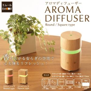 加湿器 アロマディフューザー 7色 光る 天然木製 円柱タイプ/四角柱タイプ ミスト コンパクト LED ライト アロマオイル 北欧 家電 卓上 超音波 小型 エムール