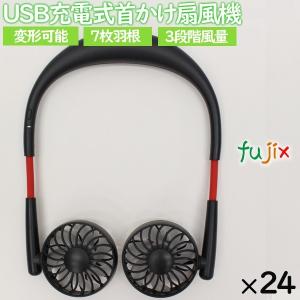 - 扇風機 首かけ 軽い 軽量 USB充電式 ネックツインファン ブラック 24個/ケース まとめ買い