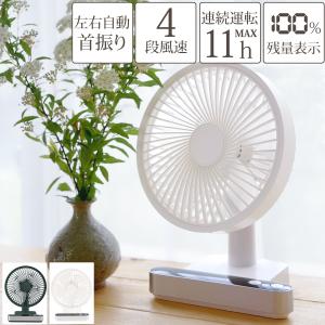 - 卓上 扇風機 首振り 静音 USB 充電式 コードレス 風量4段階 角度 風量 調整 残量表示 ポータブル 5枚羽根 サーキュレーター