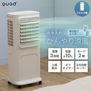 - 上部給水式 大風量 冷風扇 QUADS 移動式ファン 扇風機 気化式 おしゃれ リモコン付 省エネ キャスター付 自動ルーバー 保冷剤付 大容量 10L スポットクーラー