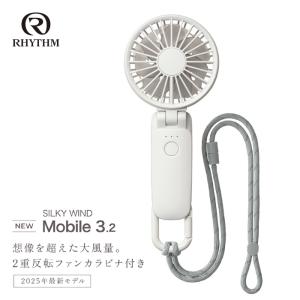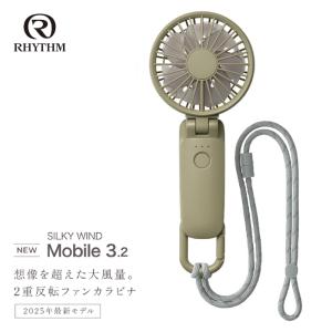 - リズムRHYTHM 携帯扇風機 2020モデル国内メーカー 弱でも涼しい 静音 DCモーター 2重反転ファン USB 充電式 カラビナ 小型 強