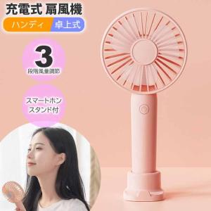 - USB充電式 ハンディファン 扇風機 卓上床置き 桃 3段階風量調節 超軽量 ポータブルファン スマホホルダー付 スマホスタンド Rk496