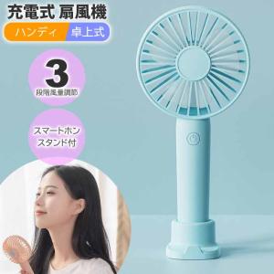 - USB充電式 ハンディファン 扇風機 卓上床置き 青 3段階風量調節 超軽量 ポータブルファン スマホホルダー付 スマホスタンド Rk497