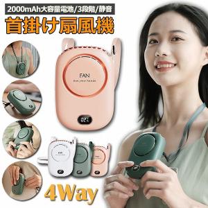 - 扇風機 首掛け 携帯扇風機 ベルトファン 腰掛けファン ハンドルファン 卓上両用 スタンド機能 充電式 3段階風量調整 静音 ミニファン 軽量 送料無料