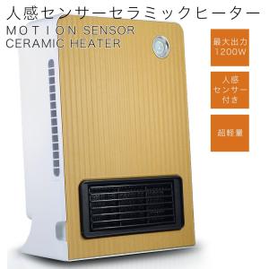 - セラミックファンヒーター 人感 センサー 1200w 600w 木目 ベージュ 小型 ミニ 人感セラミックヒータ ー 暖房器具 温風 送風 1年保証付