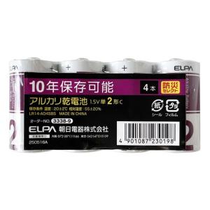 - ELPA エルパ アルカリ電池 単2形×4本防災備蓄 LR14-AD4SBS(2663317)