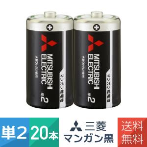 - 乾電池 単2形 2本パック 10個セット(20本)マンガン黒 R14PUD/2S 日本製 三菱電機
