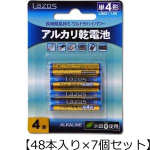 - Lazos 7個セット Lazos アルカリ乾電池 単4形 48本入り B-LA-T4X4X7