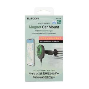 - エレコム マグネット 車載 スマホホルダー ワイヤレス充電 7.5W エアコンクリップ 黒 メーカー在庫品