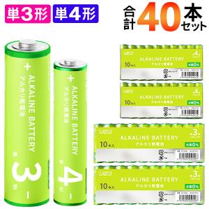 - 40本セット アルカリ乾電池 LAZOS 乾電池 単3形 単4形 水銀ゼロ使用 1.5V 長寿命 防災 備蓄 ラソス 電池 送料無料 2M◇ 単3単4形セット