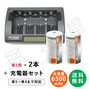 - 容量6500mAh 500回充電 充電式ニッケル水素電池 単1形 2本+充電器 RM-39 セット コード 05260x2-05291
