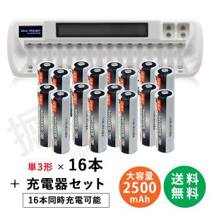 - 充電池 単3x16本 約500回 充電可 2500mAh+16本対応充電器 VIP-1680C 単3 単4 に対応 コード 05208x16-06649