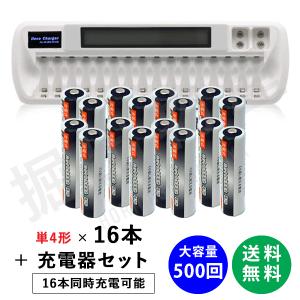 - 充電池 単4x16本 約500回 充電可 1000mAh+16本対応充電器 VIP-1680C 単3 単4 に対応 コード 05239x16-06649