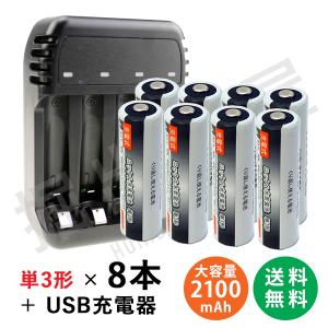 - iieco 充電池 単3形 8本セット 約1000回充電 2100mAh + 4本対応USB充電器 (宅配便発送) ZN421E 05215x8-06618