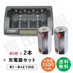 - 容量3500mAh 500回充電 充電式ニッケル水素電池 単2形2本+充電器 RM-39 セット コード 05277x2-05291