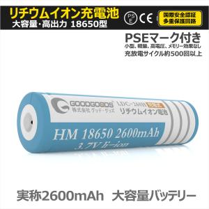 - GOODGOODS 18650 リチウムイオン電池 2600mAh バッテリー 多重保護回路付き 18650型充電池 充電式投光器 ライト ランタン用 PSE認証済み LDC-260H