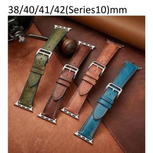 - アップルウォッチ バンド 皮 緑 革 SE 11 10 42 40mm レザー ベルト
