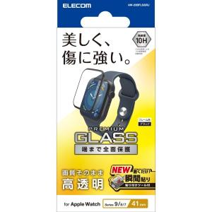 エレコム Apple Watch Series 9 8 7 41mm ガラスフィルム フルカバー 光沢 貼付けツール ブラック
