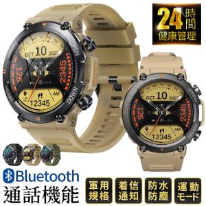 スマートウォッチ 軍用規格 丸型 軍用 スマート ウォッチ 血圧測定 体温 ヘルスウォッチ 通話機能 メンズ 24h 健康管理スマートウォッチ