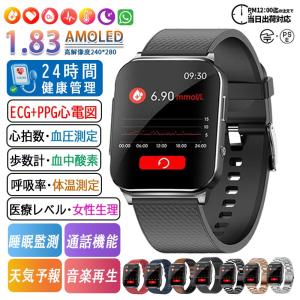 - 「医療レベル心電図ECG+PPG 」スマートウォッチ 日本製センサー 血糖値 血圧測定 心拍数 血中酸素 睡眠管理 歩数計 体温 生理管理 LINE通知 胸貼り付き 敬老の日