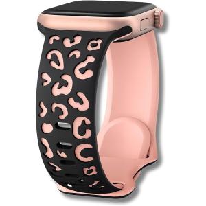 - 【互換品】 互換 アップルウォッチ バンド かわいい ベルト (レオパードブラックシリコン, 小 38mm / 40mm / 41mm)