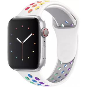 - アップルウォッチ バンド ベルト シリコン製(白 x レインボー, Lサイズ(38/40/41mm))