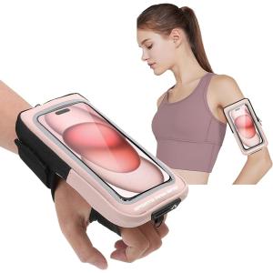 - スマホ アームバンド ランニング用 ポーチ 防水 防汗 軽量 揺れない 夜間反射 手のひら 腕 手首 6.8インチ対応 (ピンク)