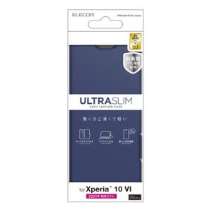- エレコム Xperia 10 VI SO-52E ケース レザー 手帳型 マグネット 衝撃吸収 超軽量 薄型 スタンド機能付 ネイビー メーカー在庫品