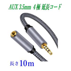 - AUX 3.5mm 4極延長オーディオケーブル 10m (オス−メス)メッシュコード