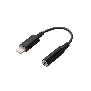 - 変換ケーブル ELECOM エレコム EHP-L35DS01CBK ヘッドホンジャックアダプター Lightning-4極イヤホン端子 通話対応 ブラック