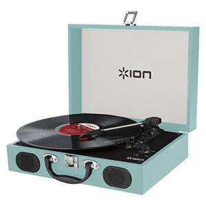 - ION Audio ポータブルレコードプレーヤー スーツケース型 スピーカー内蔵持ち運び 電池でも稼働 Vinyl Transport 水色