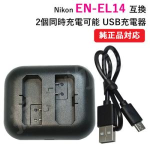 - 充電器(USB 2個同時充電 タイプ) ニコン(NIKON) EN-EL14 / EN-EL14A 対応 コード 00173