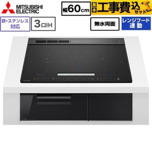 - IHヒーター 工事費込みセット CROSS+TOPシリーズ IHクッキングヒーター 60cm 三菱 CS-A206-B 3口IH 鉄・ステンレス対応 マットブラック