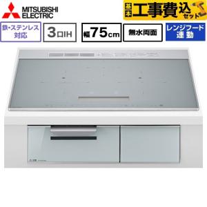 - IHヒーター 工事費込みセット CROSS+TOPシリーズ IHクッキングヒーター 75cm 三菱 CS-A207-S 3口IH 鉄・ステンレス対応 マットシルバー