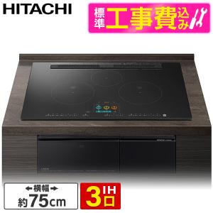 - 日立 HT-N1500KTWF K 標準設置工事セット プレミアムブラック ビルトインIHクッキングヒーター (IH3口・幅75cm・スマホアプリ対応)