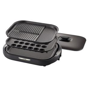 - タイガー グリル鍋 穴あき・波形 たこ焼き 深なべプレート付 メタリックブラウン CQD-B301-TH