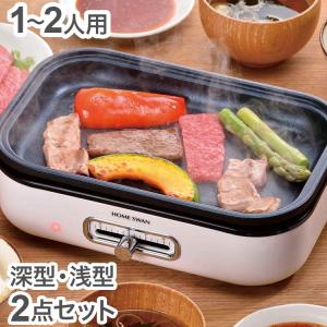 - ホットプレート 1~2人用 深・浅型2点セット コンパクト グリルプレート 温度調節機能 フッ素加工 お手入れ簡単 食卓 グリルパン 鍋物 焼物 代引不可