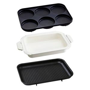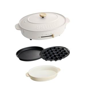 - BRUNO ブルーノ オーバルホットプレート 本体 プレート3種 (たこ焼き 深鍋 平面) ホワイト 白 おしゃれ かわいい これ1台 一台 蓋
