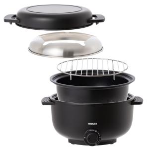 - 山善 電気鍋 グリル鍋 小型 卓上 一人用 5WAY (焼く/蒸す/揚げる/煮る/フォンデュ) デキタテポット 温度調整機能 着脱式 丸洗い