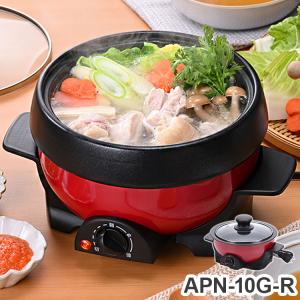 - アビテラックス 電気ミニプレート グリル鍋 500W レッド APN-10G-R 1人用 1台2役 煮る 焼く 小型 一人暮らし 深鍋 おしゃれ 着脱式 丸洗い フッ素加工