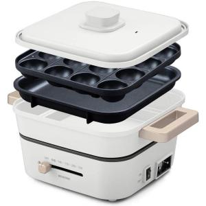 - ホットプレート グリル鍋 3枚プレートセラミックコート鍋 たこ焼き 平面プレート IGU-P3-H ライトグレー アイリスオーヤマ