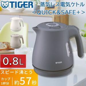 - タイガー 蒸気レス 電気ケトル QUICK & SAFF+ 0.8L スピードふっ騰 転倒お湯もれ防止 PCV-A080-CU アーバンベージュ