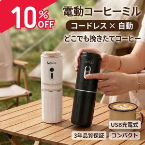 - コーヒーミル 電動 粗さ調整 セラミック刃 コーヒーグラインダー コードレス USB充電式 自動停止 小型 コンパクト キャンプ 掃除ブラシ付 KAWU