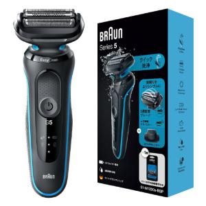 - メンズシェーバー ブラウン BRAUN シリーズ5+ 充電式 3枚刃 洗浄器付きモデル キワゾリトリマー 防水設計 アズールブルー 53-A72000CC/srm