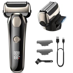 - シェーバー メンズ ひげそり 電動 電気シェーバー【2025新登場&2段階変速】3枚刃 往復式 深剃り 電気カミソリ IPX6防水 乾湿両用 お