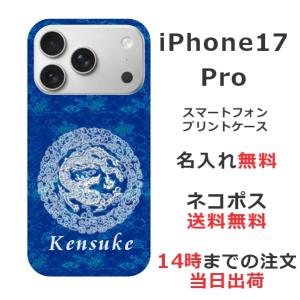 iPhone17 Pro アイフォン17プロ らふら 名入れ スマホケース 和柄 円龍青
